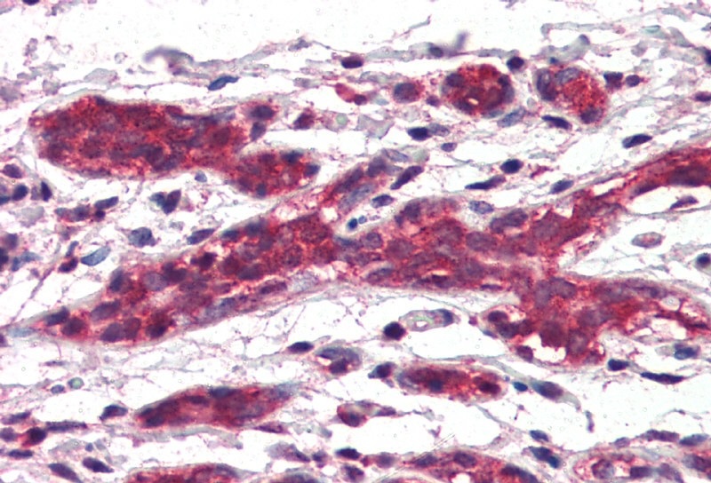 Immunohistochemistry: Paraffin-embedded Human breast tissue. Antigen Retrieval: Steam tissue section in Citrate buffer (pH 6.0). The tissue section was stained with ARG64680 anti-DAGLA antibody at 5 µg/ml dilution followed by AP-staining.