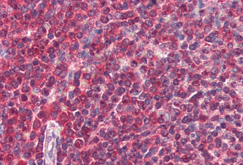 Immunohistochemistry: Paraffin-embedded Human spleen tissue. Antigen Retrieval: Steam tissue section in Citrate buffer (pH 6.0). The tissue section was stained with ARG64680 anti-DAGLA antibody at 5 µg/ml dilution followed by AP-staining.