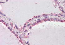 Immunohistochemistry: Paraffin-embedded Human thyroid tissue. Antigen Retrieval: Steam tissue section in Citrate buffer (pH 6.0). The tissue section was stained with ARG63157 anti-DAPK2 antibody at 2.5 µg/ml dilution followed by AP-staining.