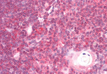 Immunohistochemistry: Paraffin-embedded Human thymus tissue. Antigen Retrieval: Steam tissue section in Citrate buffer (pH 6.0). The tissue section was stained with ARG63911 anti-DDX6 antibody at 5 µg/ml dilution followed by AP-staining.