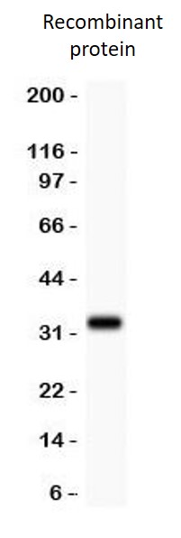 Western blot: 0.5 ng of recombinant Human protein stained with ARG58022 anti-DHFR antibody.