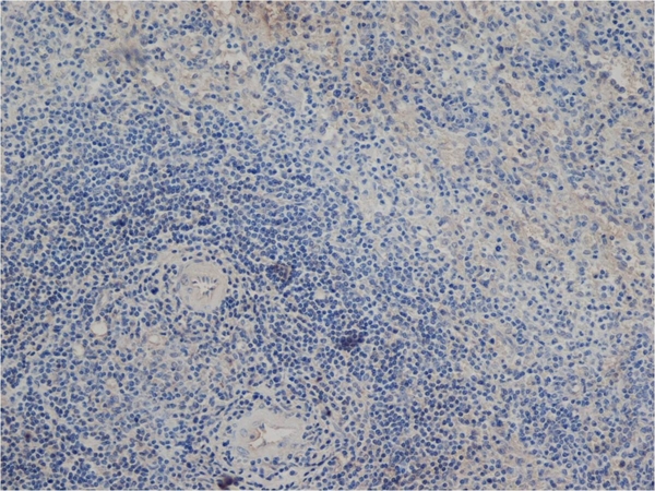Immunohistochemistry: Paraffin-embedded Human spleen stained with ARG23664 anti-DLL1 antibody [HMD1-5] followed by Goat anti-Hamster IgG (HRP).