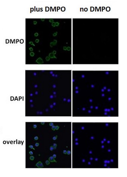 | Specificity | Recognizes DMPO, DMPO-octanoic acid, DMPO-protein adducts and DMPO-DNA adducts. Does not cross react with non-adducted proteins or DNA. |