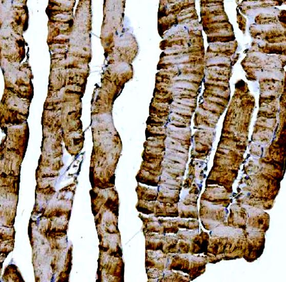 Immunohistochemistry: Human skeletal muscle stained with ARG45243 anti-DOCK4 antibody at 2 μg/ml dilution.
