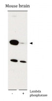 Western blot: Mouse brain untreated (left) or treated with lambda phosphatase (right) and stained with ARG40853 anti-DPYSL2 / CRMP2 phospho (Ser522) antibody.