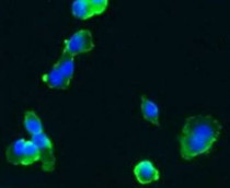 Immunofluorescence: Paraformaldehyde fixed KNRK cells permeabilized with 0.15% Triton. Cells were stained with ARG41160 anti-Doublecortin antibody (green) at 10 µg/ml dilution for 1 hour. DAPI (blue) for nuclear staining. Negative control: Unimmunized goat IgG (green) at 10 µg/ml dilution.