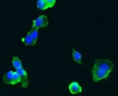 Immunofluorescence: Paraformaldehyde-fixed HepG2 cells, permeabilized with 0.15% Triton. Cells were stained with ARG41160 anti-Doublecortin antibody (green) at 5 µg/ml dilution for 1 hour. DAPI (blue) for nuclear staining.