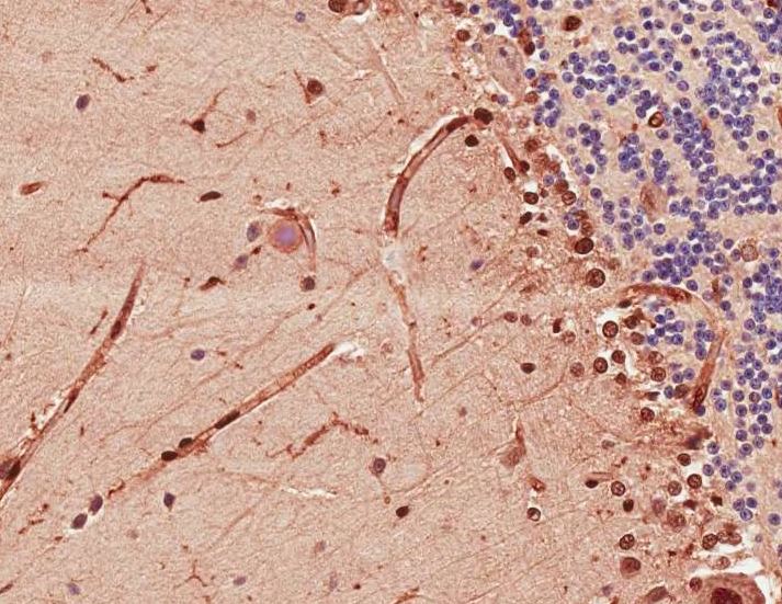 Immunohistochemistry: Paraffin-embedded Human cerebellum stained with ARG41160 anti-Doublecortin antibody at 2 µg/ml dilution. Antigen Retrieval: Microwaved tissue section in Citrate buffer (pH 6.0).