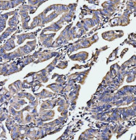 Immunohistochemistry: Human colorectal adenocarcinoma stained with ARG45510 anti-EDC4 antibody at 2 μg/ml dilution.