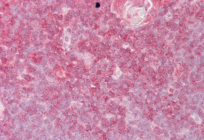 Immunohistochemistry: Paraffin-embedded Human thymus tissue. Antigen Retrieval: Steam tissue section in Citrate buffer (pH 6.0). The tissue section was stained with ARG63462 anti-ELF1 antibody at 2.5 µg/ml dilution followed by AP-staining.