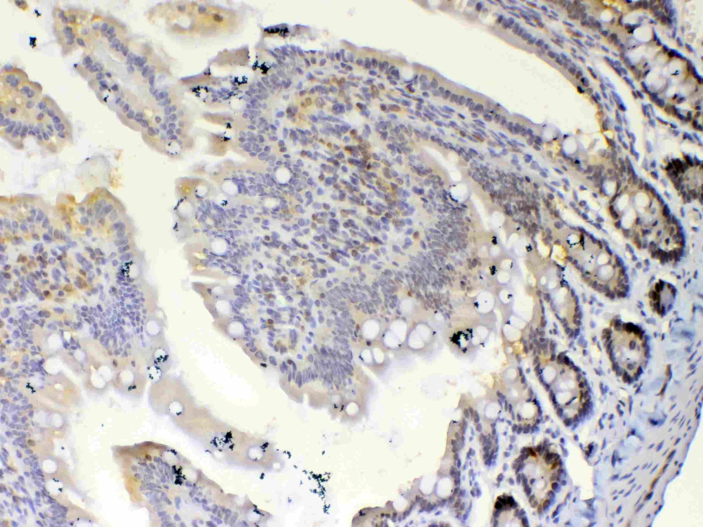 Immunohistochemistry: Paraffin-embedded Mouse small intestine tissue. Antigen Retrieval: Heat mediated was performed in Citrate buffer (pH 6.0) for 20 min. The tissue section was blocked with 10% goat serum. The tissue section was then stained with 1 µg/ml ARG58570 anti-ETV6 / Tel antibody overnight at 4°C.