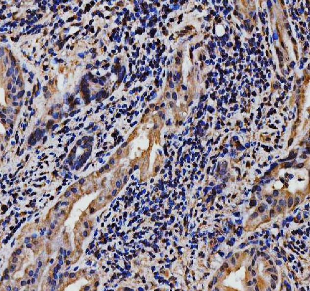 Immunohistochemistry: Human gall bladder adenosquamous carcinoma stained with ARG45609 anti-EXOSC8 antibody at 2 μg/ml dilution.