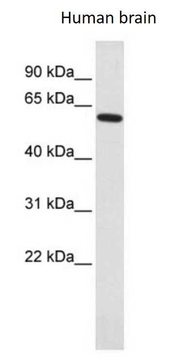 Western blot: Human brain lysate stained with ARG58944 anti-EYA1 antibody at 0.2 - 1 µg/ml dilution.