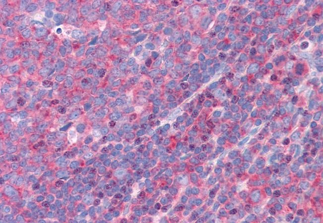 Immunohistochemistry: Paraffin-embedded Human tonsil tissue. Antigen Retrieval: Steam tissue section in Citrate buffer (pH 6.0). The tissue section was stained with ARG63662 anti-FBP17 / FNBP1 antibody at 3.75 µg/ml dilution followed by AP-staining.