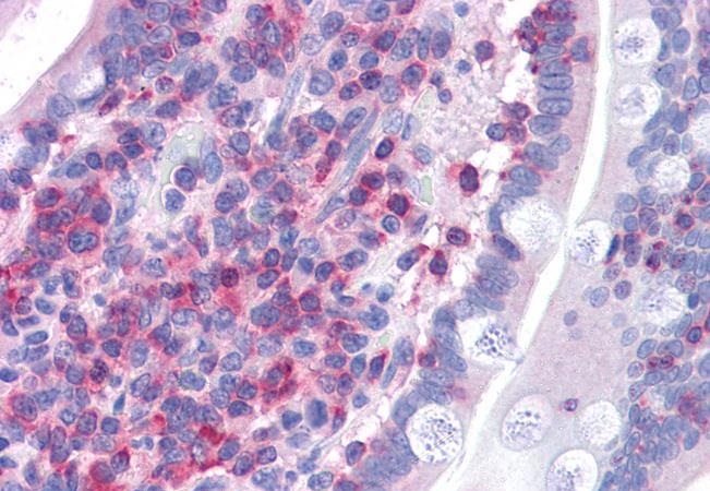 Immunohistochemistry: Paraffin-embedded Human small intestine tissue. Antigen Retrieval: Steam tissue section in Citrate buffer (pH 6.0). The tissue section was stained with ARG63662 anti-FBP17 / FNBP1 antibody at 3.75 µg/ml dilution followed by AP-staining.