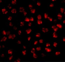 Immunofluorescence: NIH/3T3 cells stained with ARG58626 anti-FGF4 antibody at 2.5 µg/ml dilution.