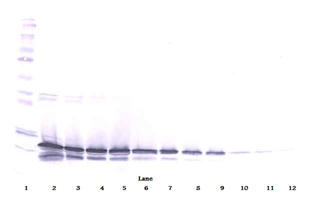Western blot: 250 - 0.24 ng of Mouse FGF-9 stained with ARG66023 anti-FGF9 antibody, under non-reducing conditions.