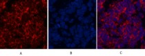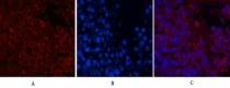 Picture A: Target. Picture B: DAPI. Picture C: merge of A+B.