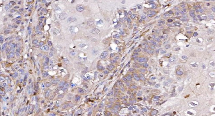 Immunohistochemistry: Human laryngeal squamous cell carcinomas stained with ARG44559 anti-FIS1 / TTC11 antibody at 2 μg/ml dilution.
