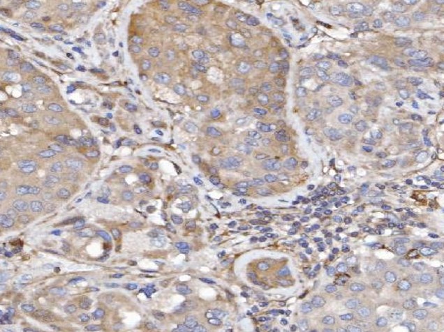 Immunohistochemistry: Human liver cancer stained with ARG44559 anti-FIS1 / TTC11 antibody at 2 μg/ml dilution.