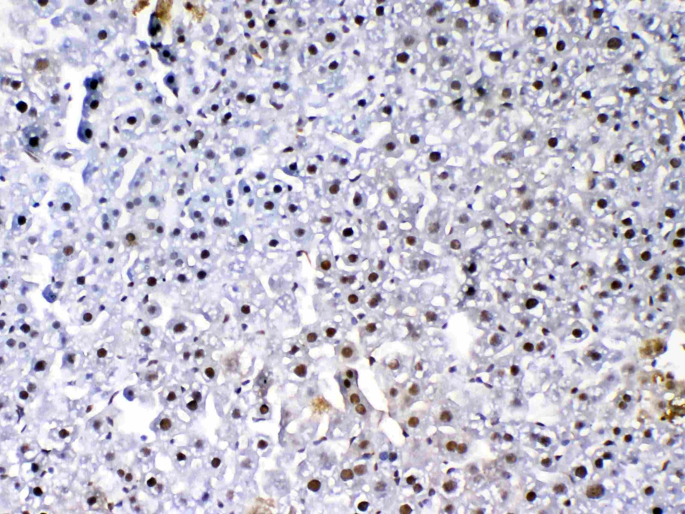 Immunohistochemistry: Paraffin-embedded Mouse liver tissue. Antigen Retrieval: Heat mediated was performed in Citrate buffer (pH 6.0) for 20 min. The tissue section was blocked with 10% Goat serum. The tissue section was then stained with ARG58698 anti-FLT4 / VEGFR3 antibody at 1 µg/ml, overnight at 4°C.
