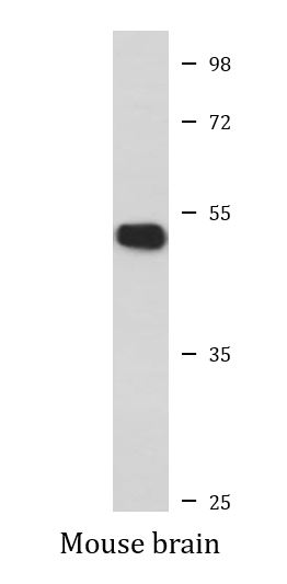 Western blot: 35 µg of Mouse brain lysate stained with ARG40713 anti-FOXG1 antibody.