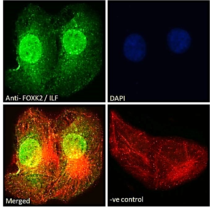 | Product Description | Goat Polyclonal antibody recognizes FOXK2 / ILF |