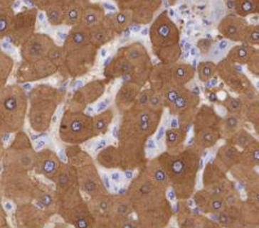 Immunohistochemistry: Human Liver stained with ARG44665 anti-FTCD / 58K Golgi protein antibody at 2 µg/mL dilution.