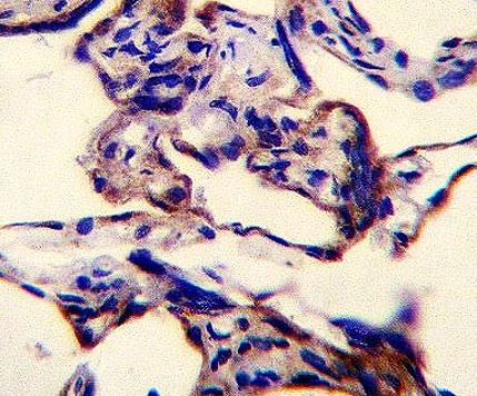 Immunohistochemistry: Formalin-fixed and paraffin-embedded Human placenta tissue stained with ARG55884 anti-Fatty Acid Synthase antibody.