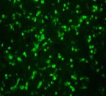 Immunofluorescence: ARG67201 anti-Fowl Adenovirus 8b / FAdV8b Fiber Protein antibody [4D9] was used for detecting LMH cells infected with FAdV-8b.