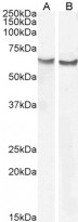 Western blot: 35 µg of Human heart (A) and Human placenta (B) (in RIPA buffer) stained with ARG64623 anti-Frizzled 2 antibody at 0.03 µg/ml (A) and 0.1 µg/ml (B) dilutions and incubated at RT for 1 hour.