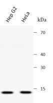 Western blot: HepG2 and HeLa stained with ARG45141 anti-FXYD 1 antibody at 0.5 μg/ml dilution.