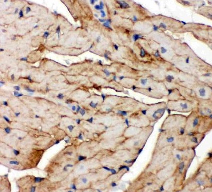 Immunohistochemistry: Mouse cardiac muscle stained with ARG45141 anti-FXYD 1 antibody at 1 μg/ml dilution.