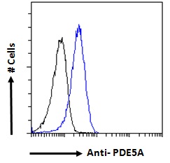 Flow Cytometry: Paraformaldehyde-fixed HEK293 cells permeabilized with 0.5% Triton. Cells were stained with ARG64228 anti-GABPB2 antibody (blue line) at 10 µg/ml dilution for 1 hour, followed by incubation with Alexa FluorR 488 labelled secondary antibody. IgG control: Unimmunized goat IgG (black line).
