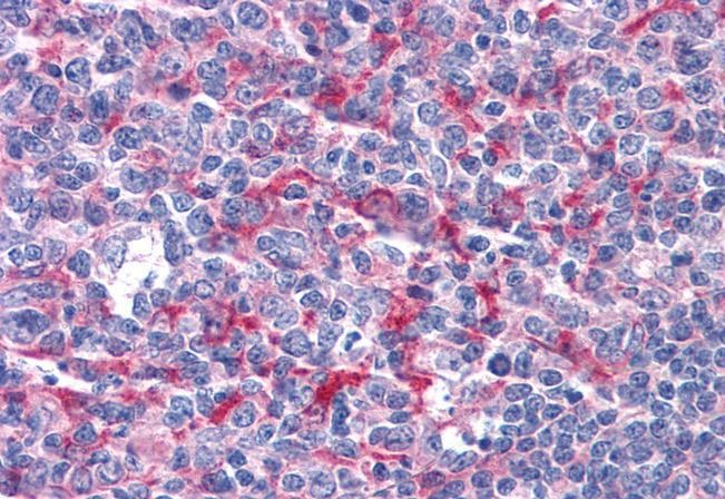 Immunohistochemistry: Paraffin-embedded Human spleen tissue. Antigen Retrieval: Steam tissue section in Citrate buffer (pH 6.0). The tissue section was stained with ARG64228 anti-GABPB2 antibody at 3.75 µg/ml dilution followed by AP-staining.