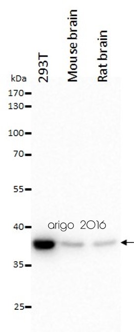 Western blot: 20 µg of 293T cell lysate stained with ARG65680 anti-GAPDH antibody at 1:10000 dilution.