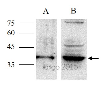 | Storage Instruction | For continuous use, store undiluted antibody at 2-8°C for up to a week. For long-term storage, aliquot and store at -20°C. Storage in frost free freezers is not recommended. Avoid repeated freeze/thaw cycles. Suggest spin the vial prior to opening. The antibody solution should be gently mixed before use. |
