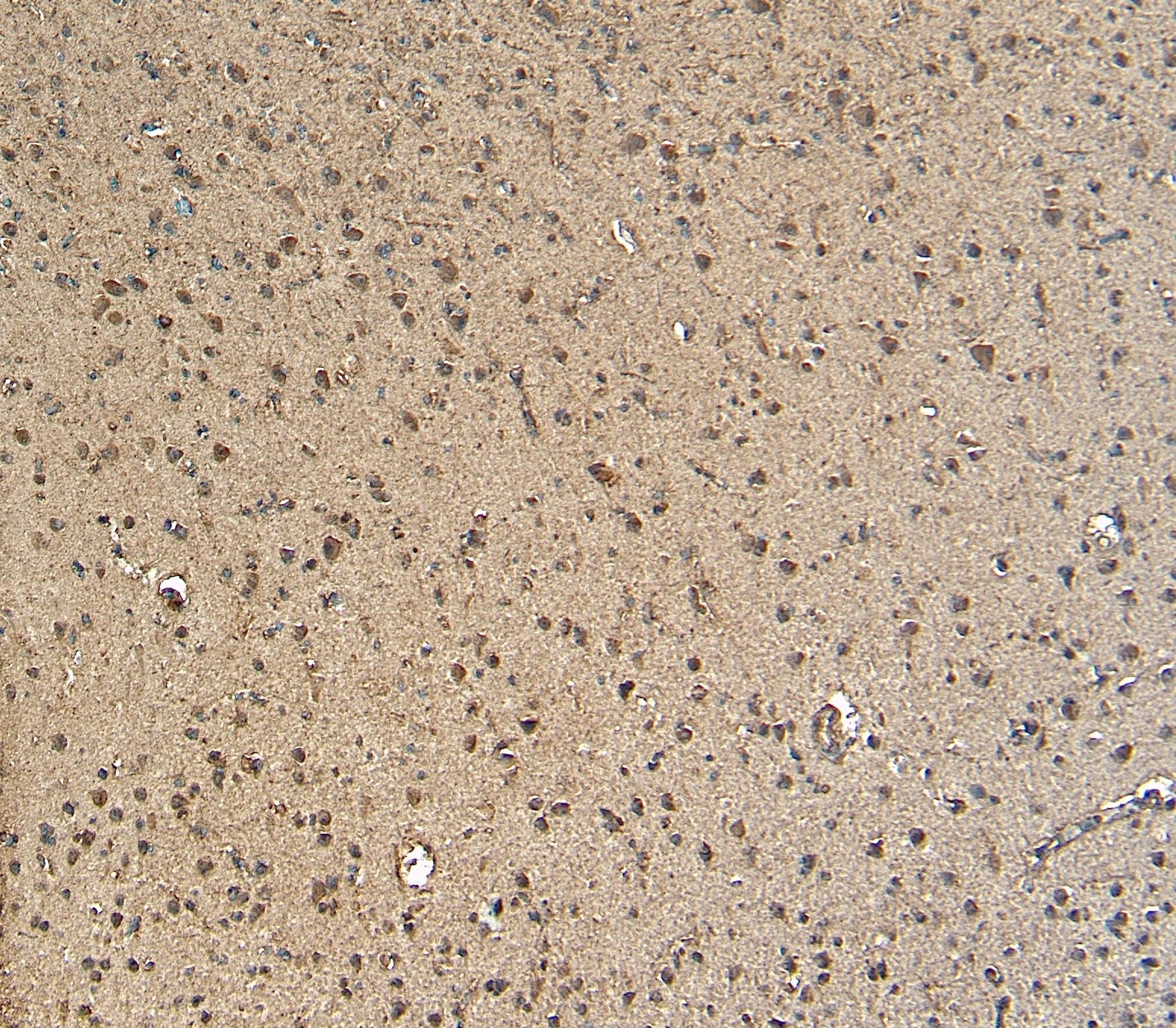Immunohistochemistry: Paraffin-embedded Human cortex tissue. Antigen Retrieval: Heat mediation was performed in Citrate buffer (pH 6.0). The tissue section was stained with ARG64106 anti-GBX2 antibody at 5 µg/ml dilution followed by HRP-staining.