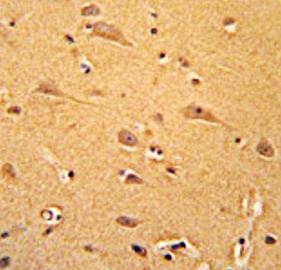 Immunohistochemistry: Formalin-fixed and paraffin-embedded Human brain tissue stained with ARG58993 anti-GCC2 / GCC185 antibody.
