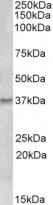 Western Blot: Human Tonsil lysate (35 µg protein in RIPA buffer) stained with ARG64624 anti-GCH1 antibody at 0.5 µg/ml dilution.