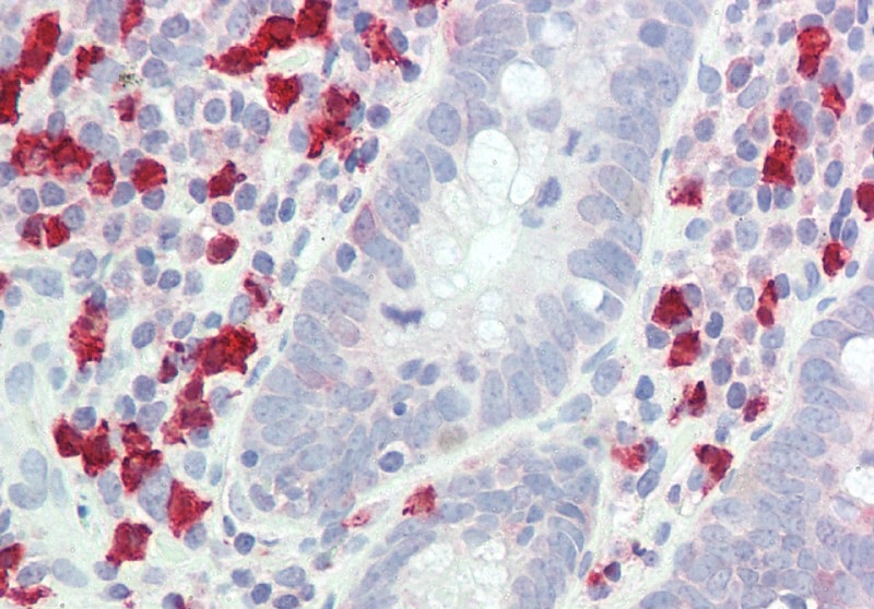 Immunohistochemistry: Paraffin-embedded Human small intestine tissue. Antigen Retrieval: Steam tissue section in Citrate buffer (pH 6.0). The tissue section was stained with ARG64624 anti-GCH1 antibody at 5 µg/ml dilution followed by AP-staining.