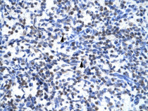 Immunohistochemistry: Paraffin-embedded Human spleen tissue stained with ARG40417 anti-GCM1 antibody.