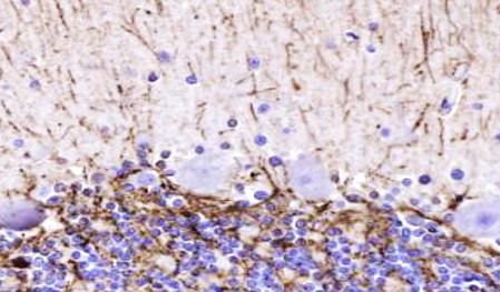 Immunohistochemistry: Human Cerebellum stained with ARG44667 anti-GFAP antibody at 7.5 µg/mL dilution.