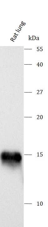 Western blot: Rat lung stained with ARG44089 anti-GHRH antibody at 0.5 μg/mL dilution.