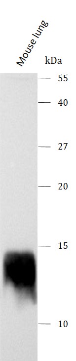 Western blot: Mouse lung stained with ARG44089 anti-GHRH antibody at 0.5 μg/mL dilution.