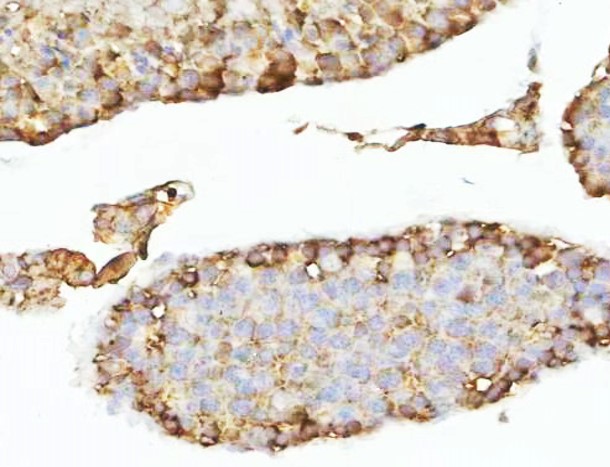 Immunohistochemistry: Mouse testis stained with ARG44089 anti-GHRH antibody at 2 μg/ml dilution.