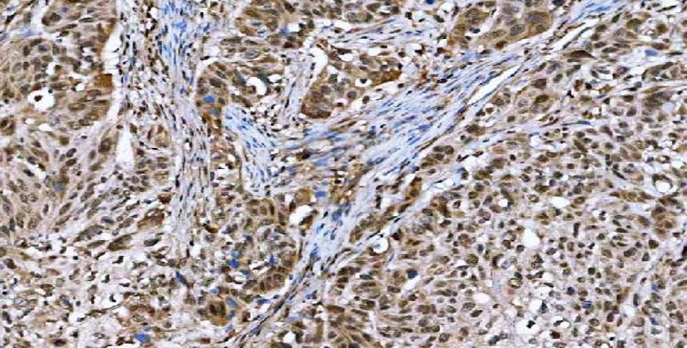 Immunohistochemistry: Human esophageal squamous carcinoma stained with ARG44083 anti-GLI2 antibody at 2 μg/ml dilution.