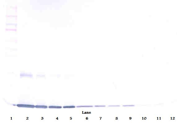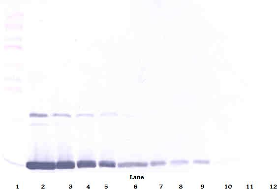 Western blot: 250 - 0.24 ng of Rat GM-CSF stained with ARG56801 anti-GM-CSF antibody (Biotin), under reducing conditions.