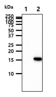 Western blot: 10 µg of 1) 293T cell lysate, 2) GMFB transfected 293T cell lysate stained with ARG57086 anti-GMF beta antibody [44D8] at 1:1000.