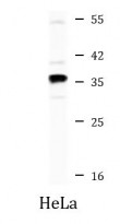 Western blot: 35 µg of HeLa cell lysate stained with ARG55094 anti-GOLPH3 antibody.